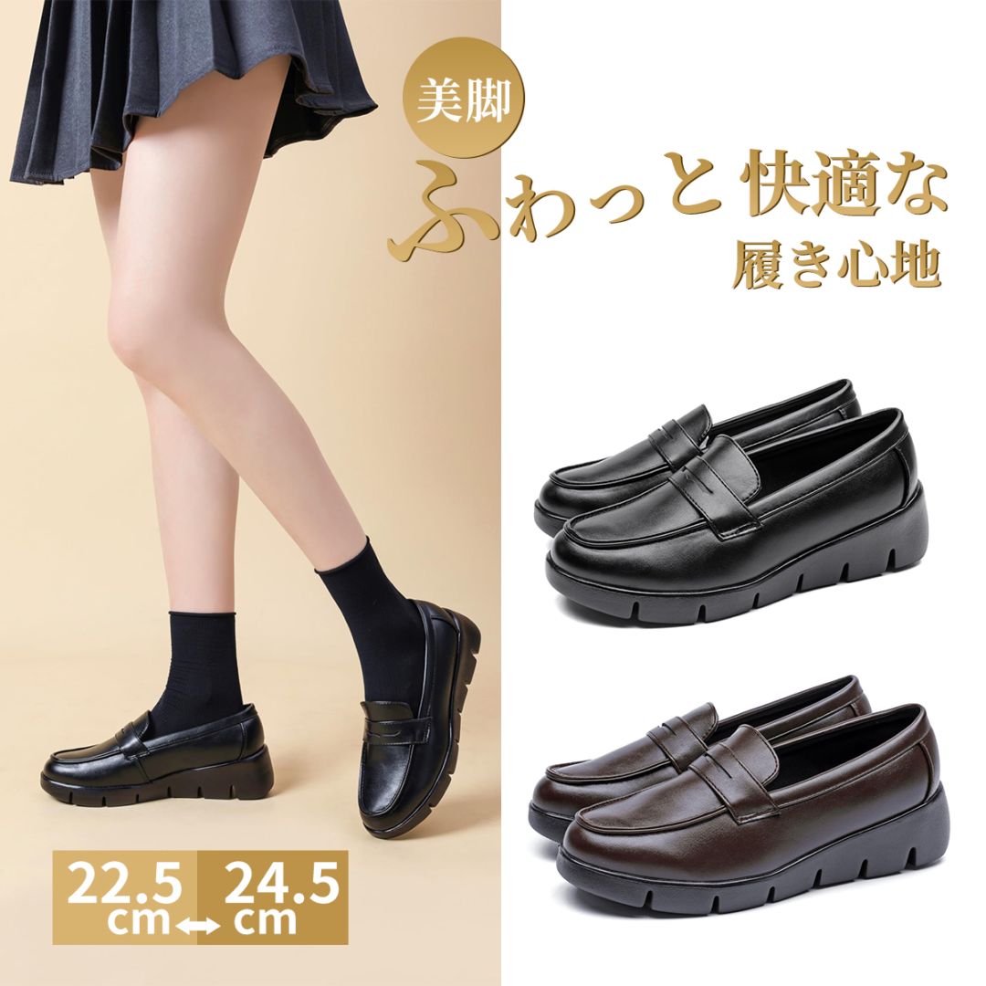 [GIO&GIA] [ジオアンドジア] レディース ローファ スリッポン 学生靴 ヒールアップ 軽量 通勤 通学 撥水加工 防滑 ...