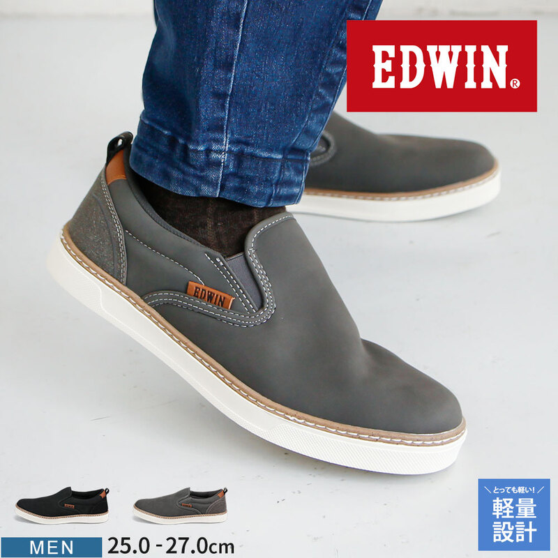 エドウィン スニーカー メンズ スリッポン ローカット 紐なし 履きやすい 歩きやすい 軽い クッションインソール シューズ 靴 ...