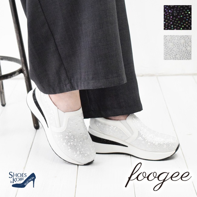 セール価格 foogee スリッポンシューズ レディース キラキラストーン スタイルアップヒール サイドゴア [FOO-FP-25...