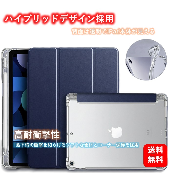 iPadケース 10.9/11インチ汎用 クリア背面ハイブリッドケース 耐衝撃エアクッション・三つ折りスタンド機能 ペンホルダー内...