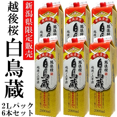 越後桜 白鳥蔵2Lパック×6本 糖類、酸味料不使用の本格新潟日本酒パック