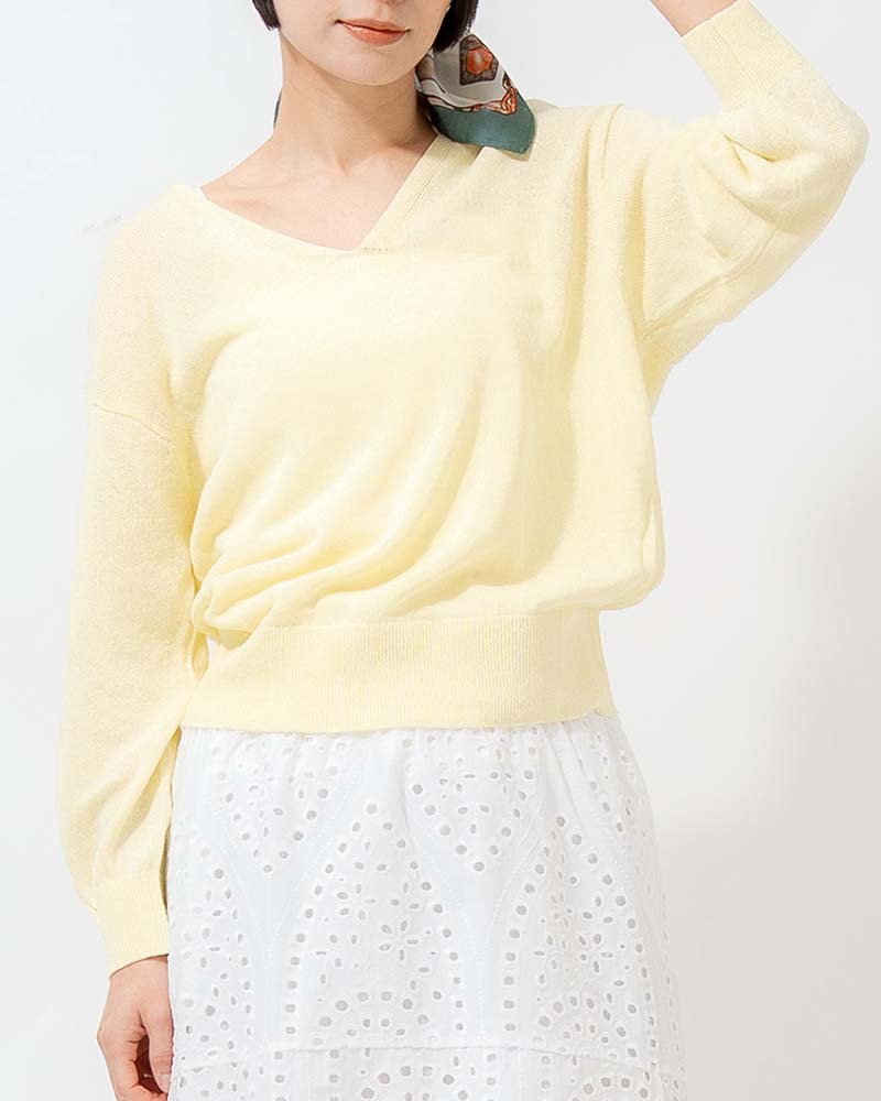 和紙コットン天竺Vネックプルオーバー