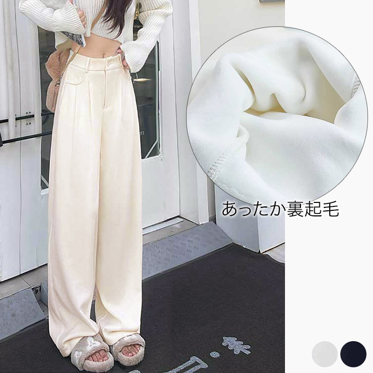 てろんと感 裏起毛 コーデュロイ ハイウエスト ワイドパンツ