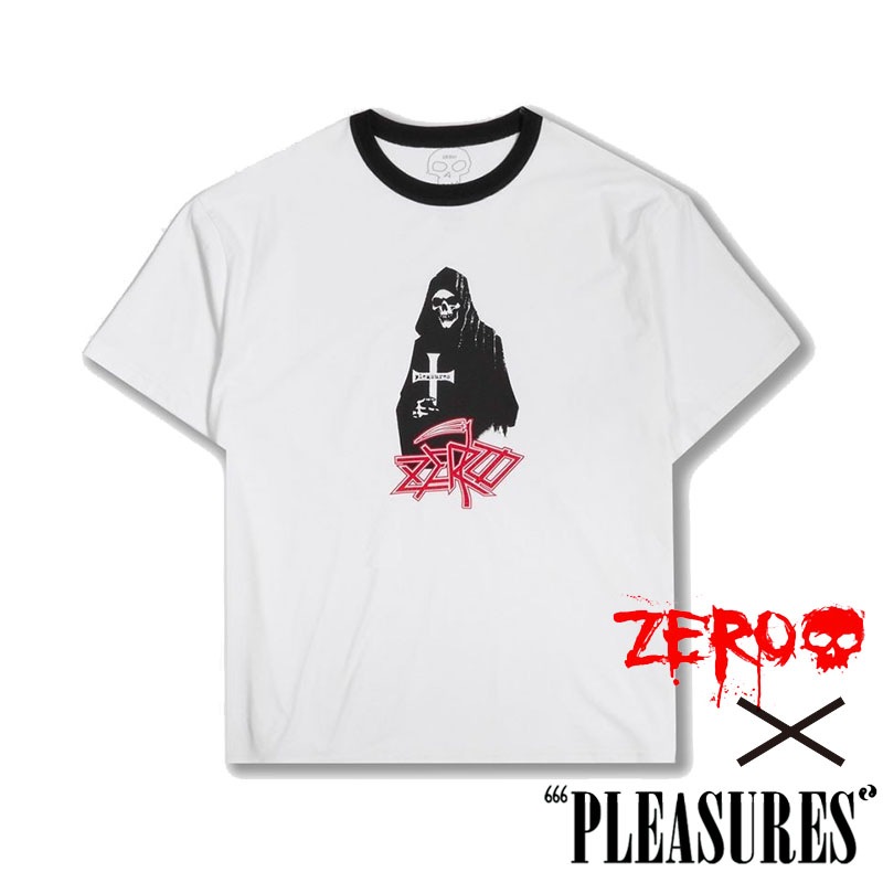 【PLEASURES/プレジャーズ×ZERO SKATEBOARDS】REAPER RINGER Tシャツ / WHITE