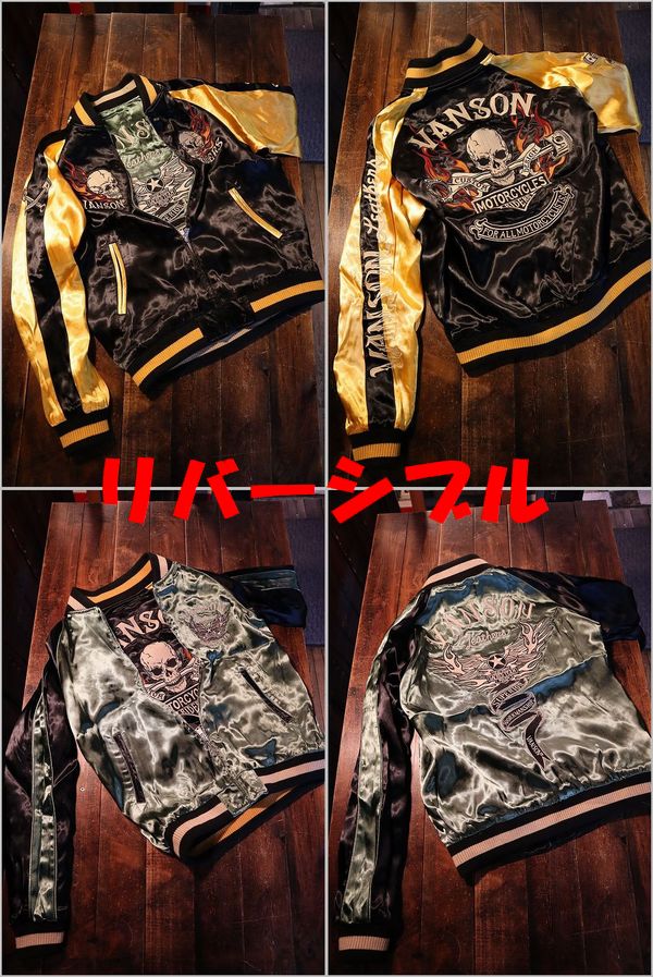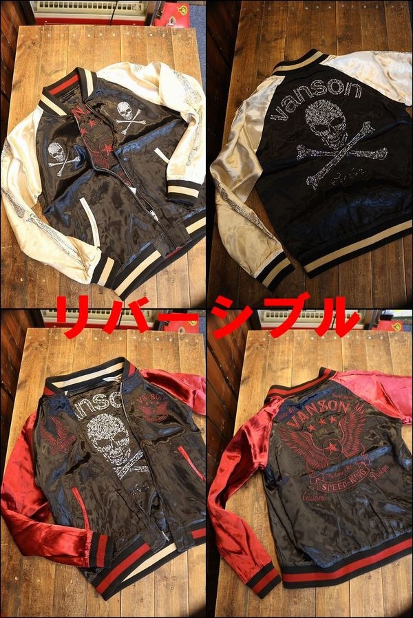 VANSON バンソン NVJK-2407 リバーシブルスカジャン ラインストーン 刺繍スカジャン