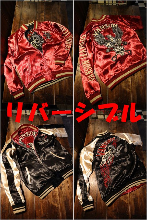 VANSON バンソン NVJK-2201 リバーシブル スカジャン イーグル スカル 刺繍