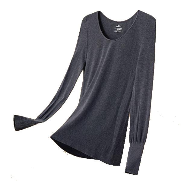 レディース ラウンドネック インナー アンダーシャツ 長袖 フリーサイズ 重ね着 フィット フェミニン シルエット 肌触り 着心地...