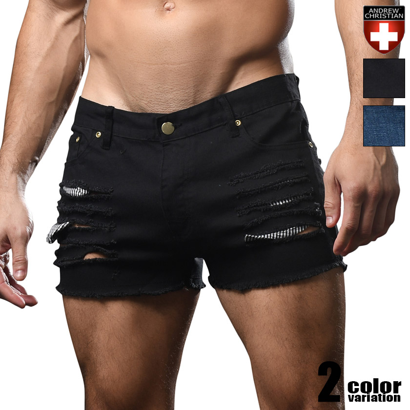 AndrewChristian/アンドリュークリスチャン Slashed Denim Shorts デストロイ ショートパンツ シ...