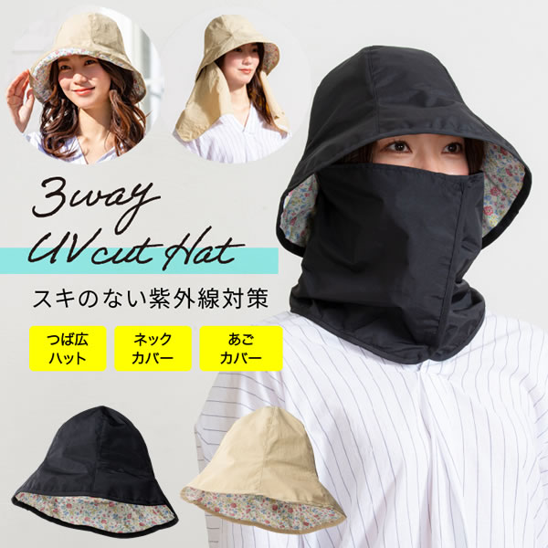 3WAY便利ハット 紫外線対策 紫外線カット UVカット 日焼け対策 紫外線 日焼け 防止 つば広 ネックカバー アウトドア 海 ...