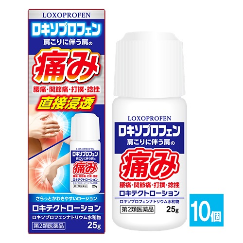 訳あり【第2類医薬品】★ロキテクトローション 25g×10個セット【新生薬品】肩こり 腰痛 筋肉痛 打撲 捻挫 関節痛 背中 鎮痛...