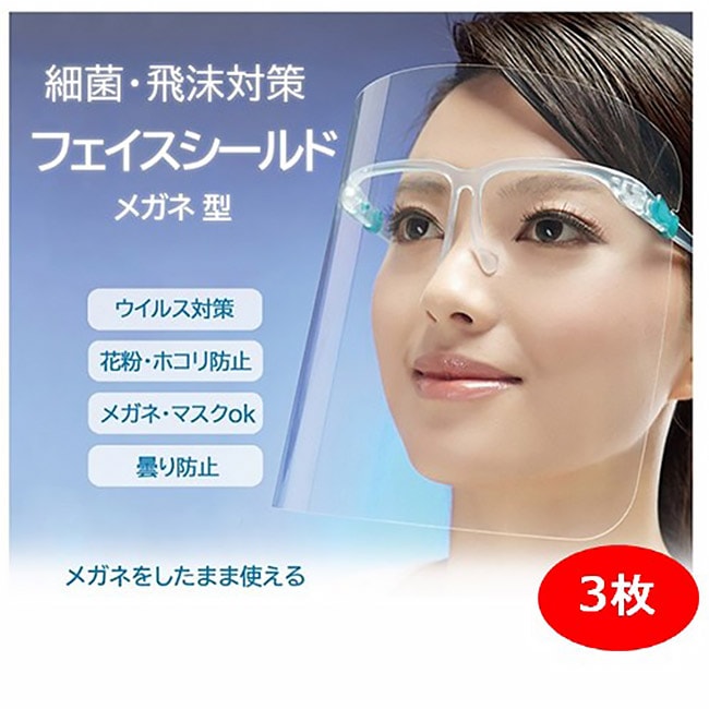 フェイスシールド 3枚 ランダム発送 メガネ式 フェイスガード 目立たない 眼鏡 メガネタイプ 飛沫防止 顔面保護マスク 透明マス...