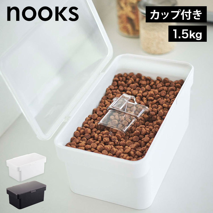 山崎実業 密閉ペットフードストッカー 1.5kg 計量カップ付 ヌークス 5609 5610 ホワイト ブラック nooks 公式...