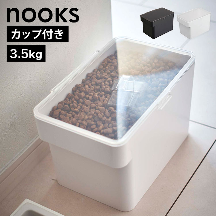 山崎実業 密閉ペットフードストッカー 3.5kg 計量カップ付 ヌークス 5611 5612 ホワイト ブラック nooks 公式...