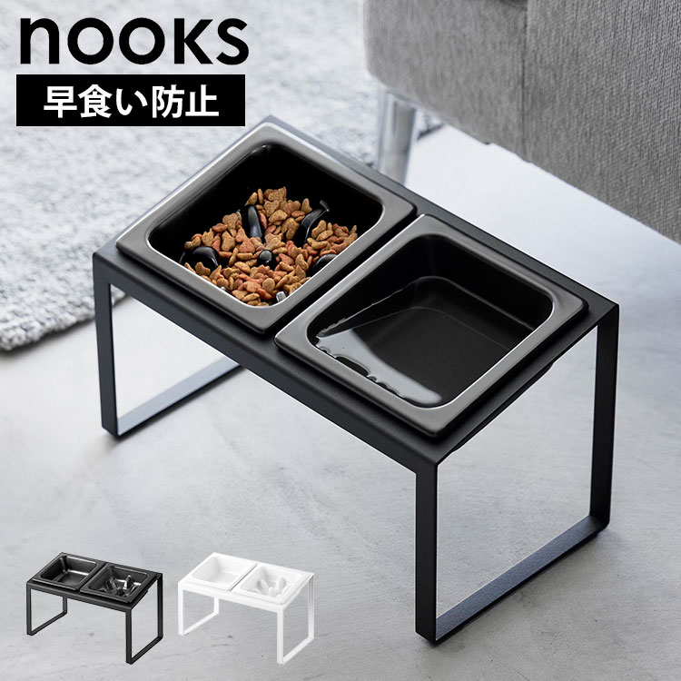 山崎実業 早食い防止ペットフードボウルスタンド 斜めハイタイプ ヌークス 10239 10240 ホワイト ブラック nooks ...