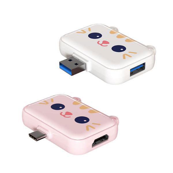 USBハブ ドッキングステーション ネコ型 3-in-1 Type-A Type-C 対応 HDMI PD USB 高速データ転送...