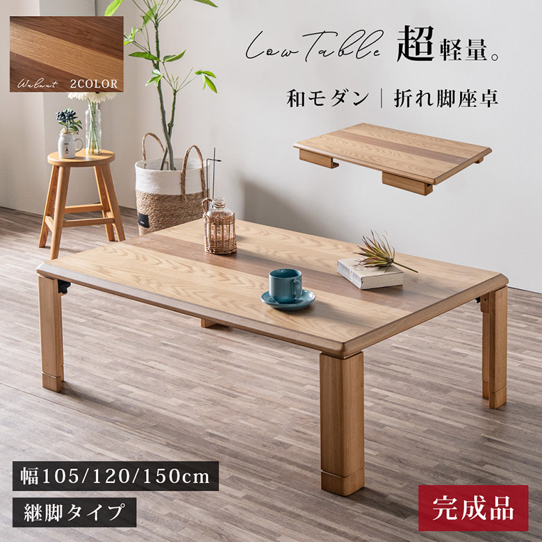 座卓 軽量 折りたたみ ローテーブル 幅105/120/150cm 継脚付 ナチュラル ブラウン ウォールナット突板/オーク突板 ...