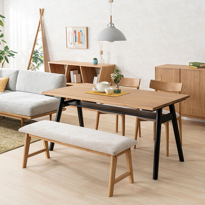 ダイニング4点セット Thor(トール)180 TOP オークBR+スリット脚アイアンBK+背付ベンチ Bragi(ブラギ)背BC...