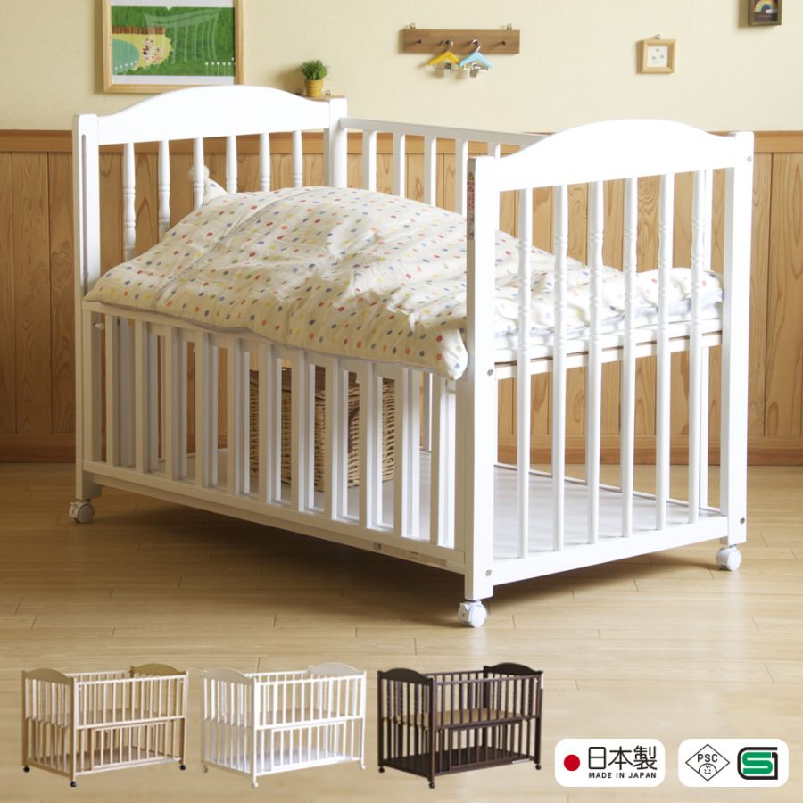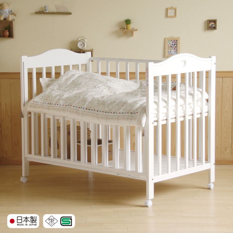 ベビーベッド「NEWプロヴァンス(WH)ホワイト」 キャスター付き ハイタイプ 木製 国産 高さ調整 ベビー布団セット 石崎家具
