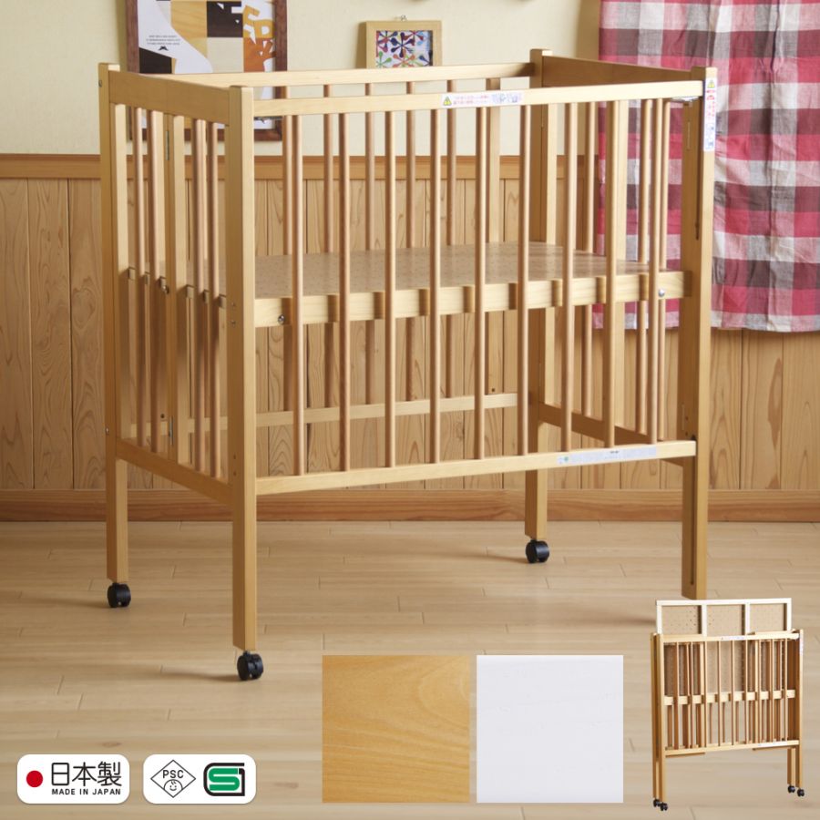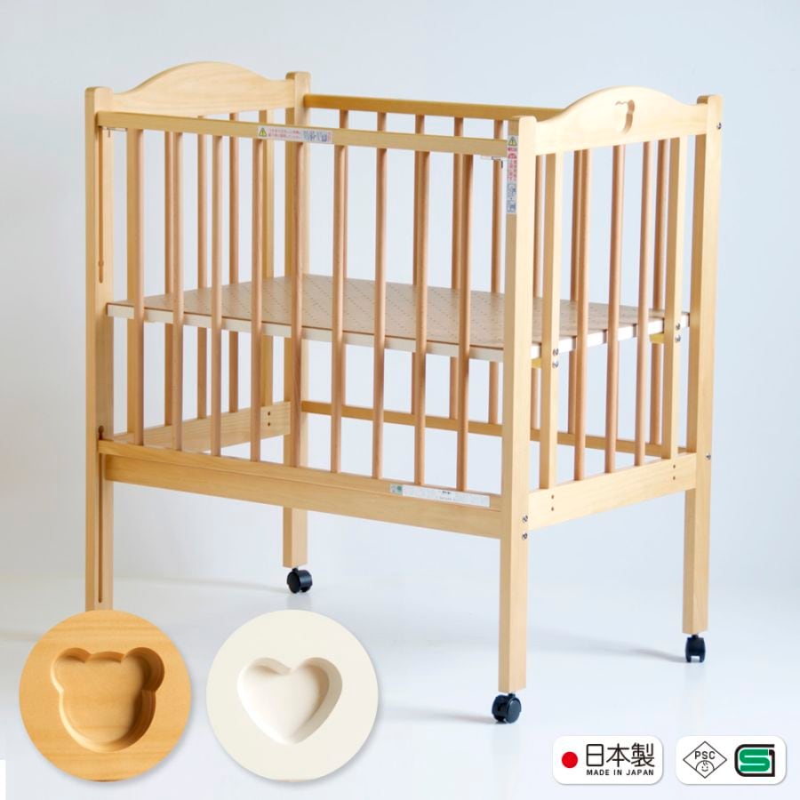 日本製 ベビーベッド「Newファンシーミニ ※ B品 ※」 木製 国産 ハイタイプ ベビー布団 コンパクト 高さ調節 キャスタ...