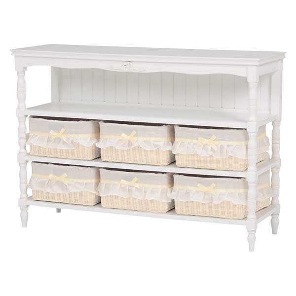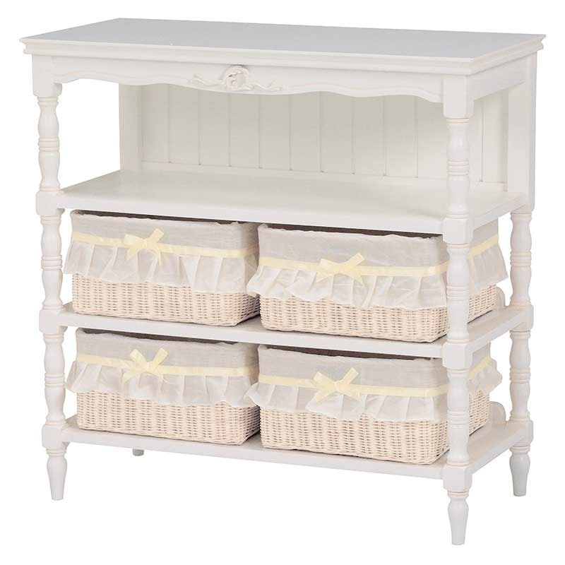 キャビネット アンティーク 白 おしゃれ チェスト 完成品 バスケット付き