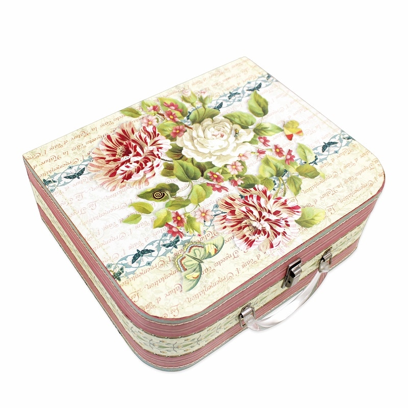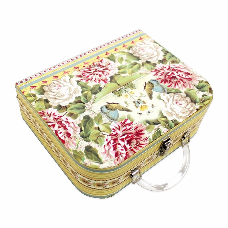 Punch Studio(パンチスタジオ) スーツケース型 ボックス Mサイズ (薔薇×蝶×ホワイト)