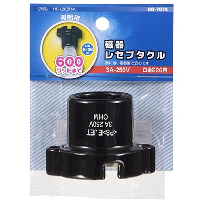 HS-L26ZR-K || ソケット OHM 磁器レセプタクル【E26口金/黒色(ブラック)】 熱に強い磁器製 定格:3A-250...
