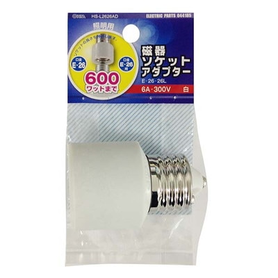 HS-L2626AD || 口金延長アダプター OHM (オーム電機) 磁器製【E26⇒E26】ソケット高さ30mm延長/定格:6...