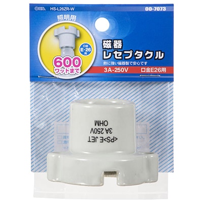 HS-L26ZR-W || ソケット OHM 磁器レセプタクル【E26口金/白色(ホワイト)】 熱に強い磁器製 定格:3A-250...
