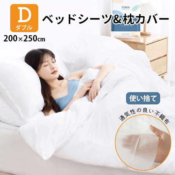【セール】【即納】 使い捨て ベッドシーツ 枕カバー ダブルサイズ 通気性 不織布 衛生的 アウトドア 自宅 ホテル 整体院 防災...