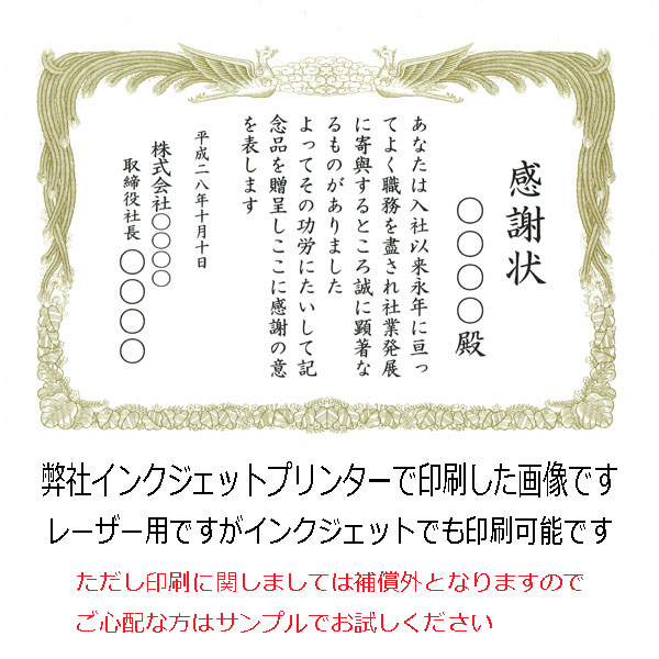 賞状用紙 A4 横型 ホワイト プリンタ対応 50枚~