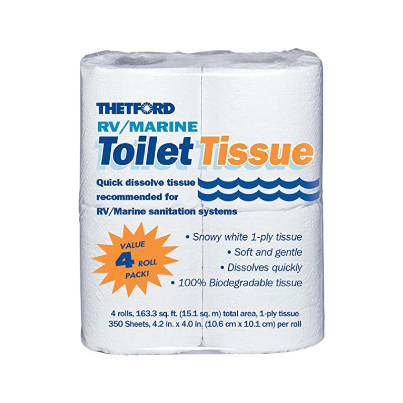 THETFORD 水溶性 トイレットペーパー シングル 4ロール / 水に溶けやすい マリントイレ ポータブルトイレ
