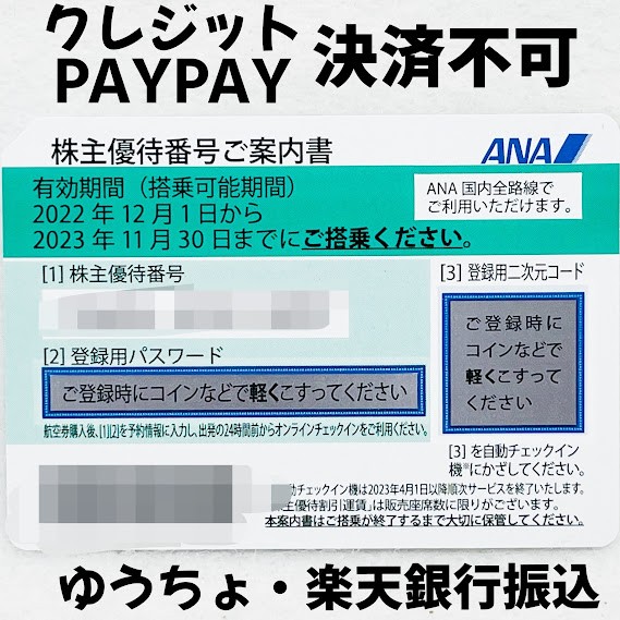 【未使用】ANA全日空株主優待券1枚 使用期限2023/11/30まで有効 グリーン新券※クレジット決済PAYPAY残高決済不可