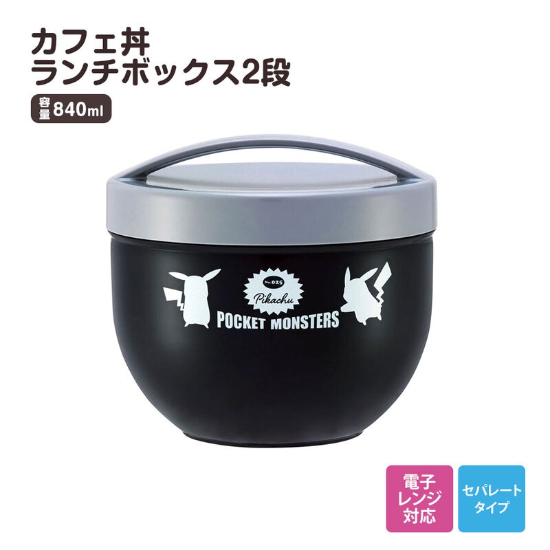 弁当箱 どんぶり型 840ml メンズ 電子レンジ対応 2段 後のせ 中学生 高校生 シンプル おしゃれ ブラック 黒 ポケモン ...