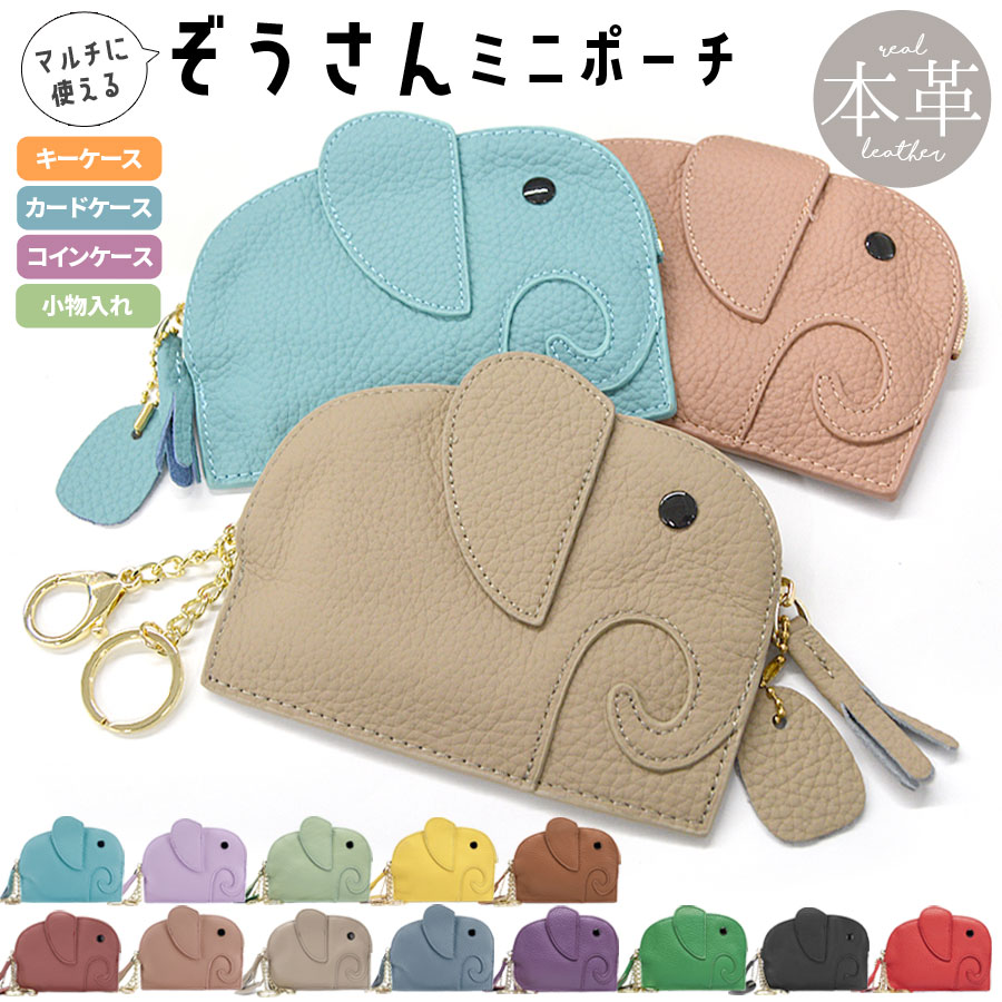 ゾウ 小銭入れ 本革 カードケース コインケース 財布 小物入れ キーケース ミニ財布 象 ぞうさん 【送料pt100】