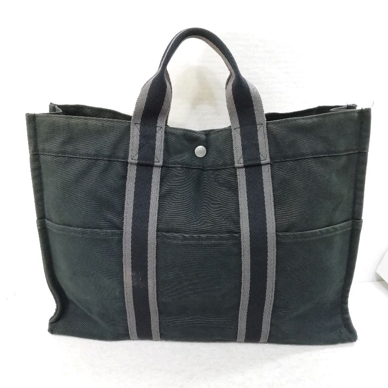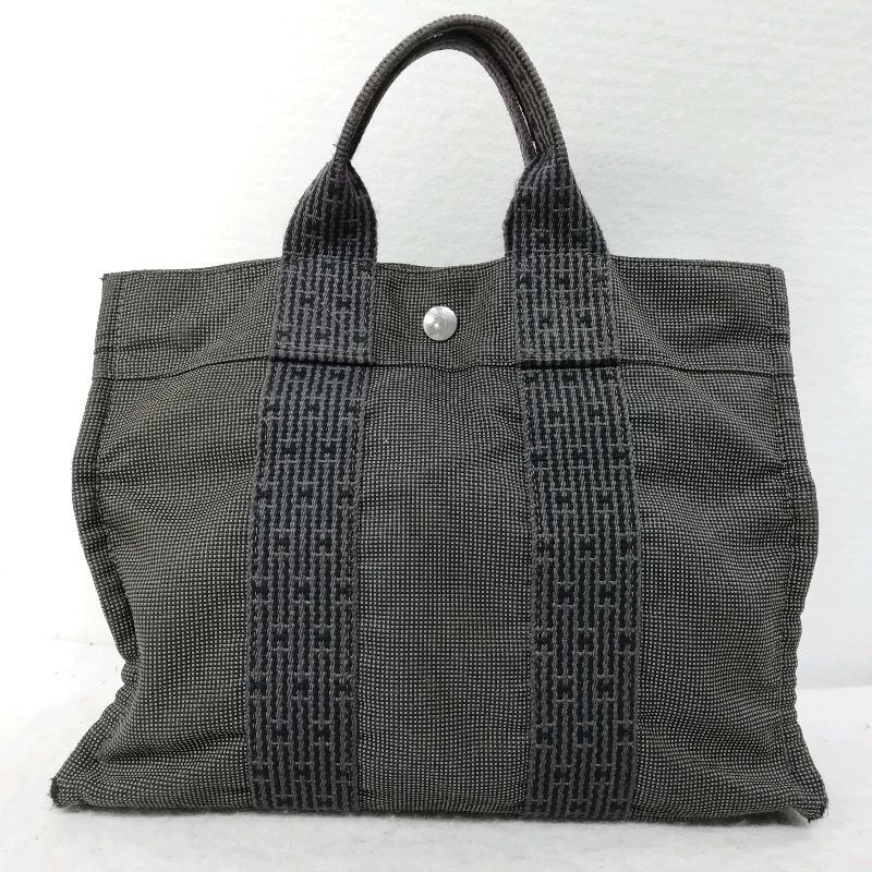 【中古】エルメス エールライン トートPM グレー★片方のファスナー不動