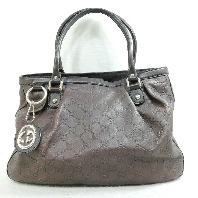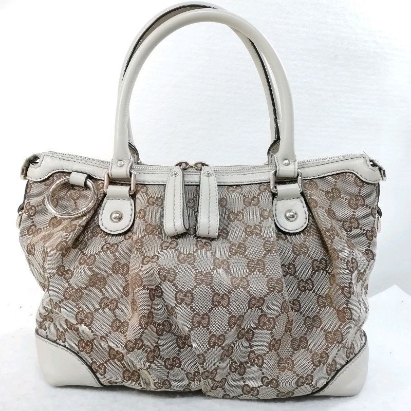 【中古】GUCCI 296835.002123 GGシマ ブラウン×レザー ハンドバッグ トートバッグ