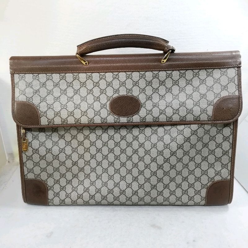 【中古】GUCCI オールドグッチ GG トラベルラゲッジバッグ 旅行バッグ ブラウン×PVCレザー★型番無し