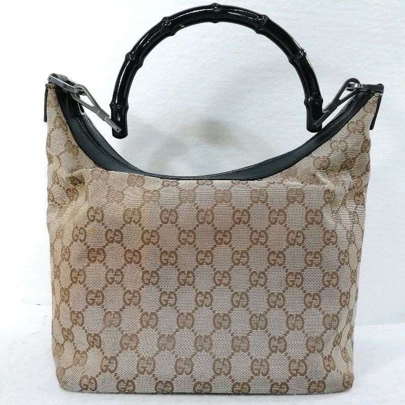 【中古】GUCCI 000.0531.200110 GGキャンバス×レザー ブラウン×ブラック バンブーハンドル ハンドバッグ