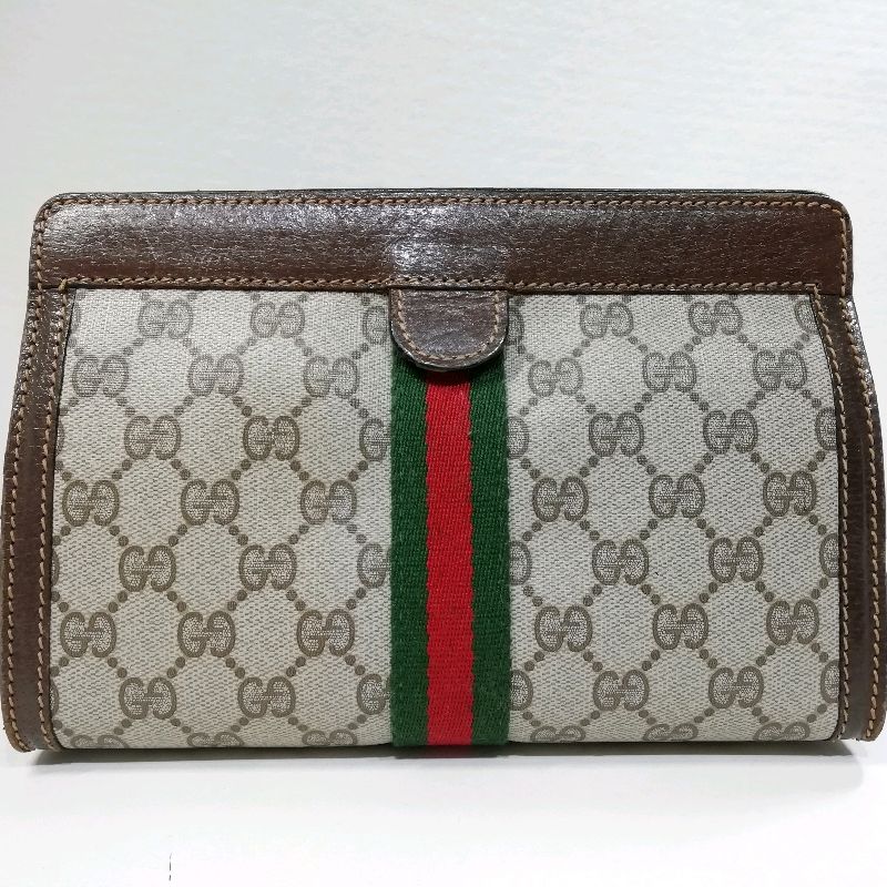 【中古】GUCCI グッチ パフューム クラッチバッグ GG ブラウン シェリーライン★型番無し