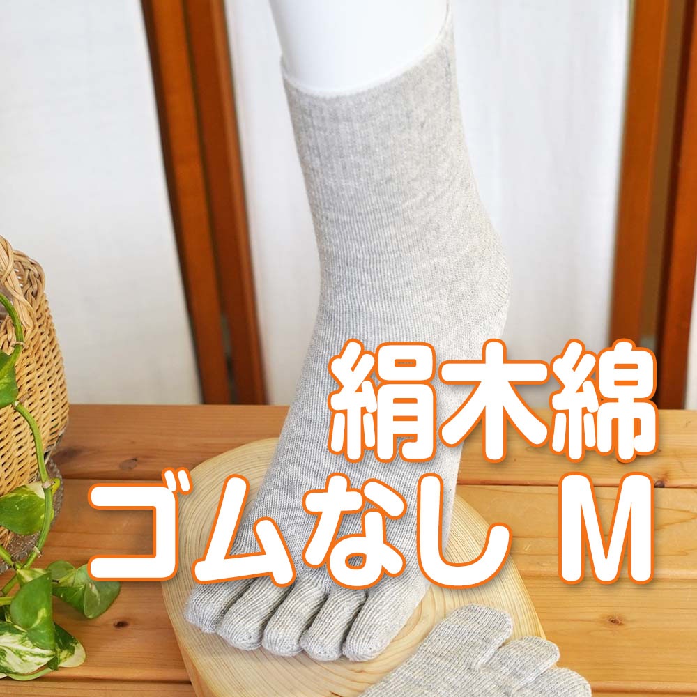 さっぱり快適5本指 絹+綿 天然素材 絹木綿 ゴムなし Mサイズ