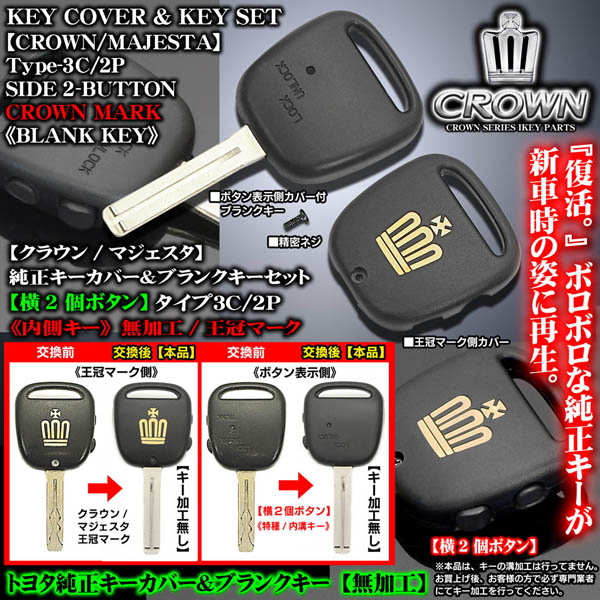 タイプ3C/2P【横2ボタン】170系マジェスタ《王冠マーク》純正キーカバー付ブランクキーセット/合鍵[内溝キー/無加工]ブラガ