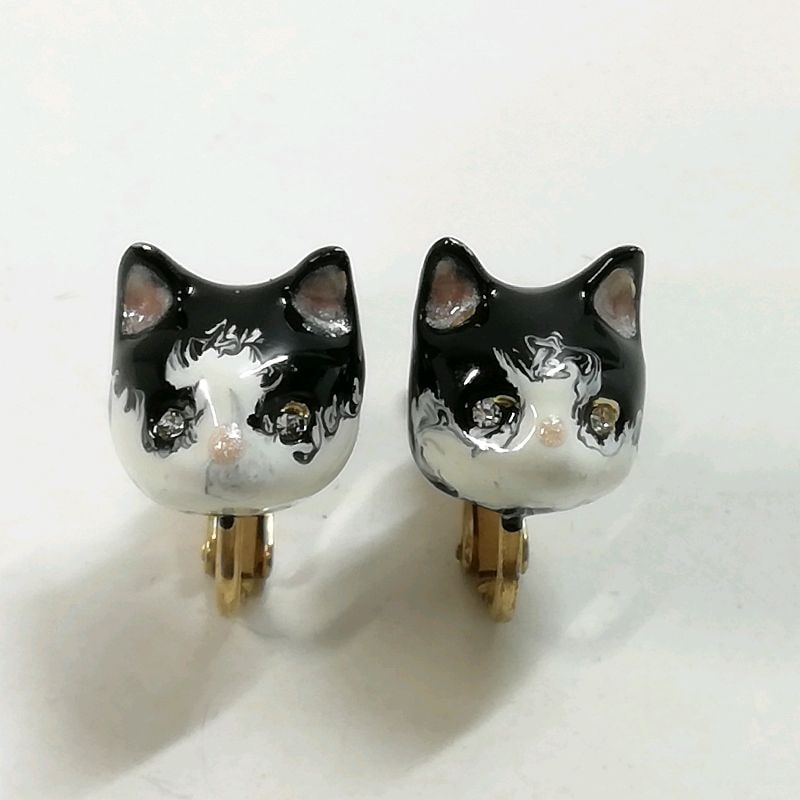 【中古】【送料無料】イタリア製キャットモチーフイヤリング ブラック×ホワイト※メール便でお送りします【代引き不可】