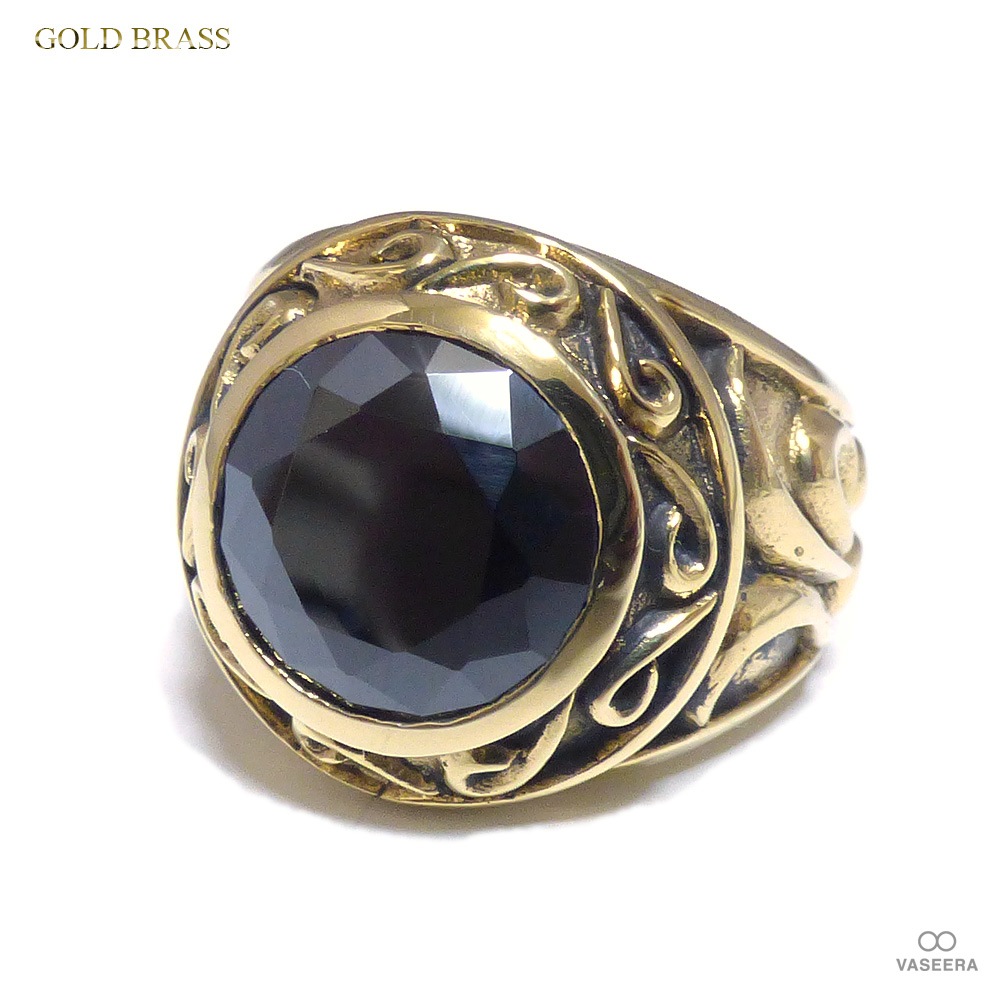 10mmカットブラックジルコニア アラベスク装飾仕上げ ゴールドブラス(真鍮) リング 【GOLD BRASS /指輪】
