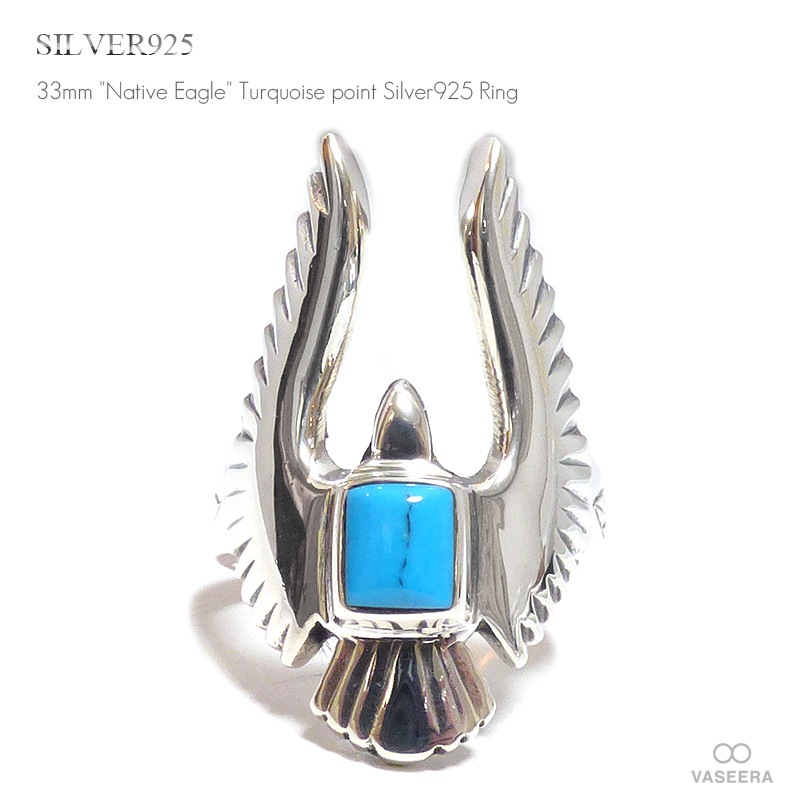 ネイティブ・イーグル ターコイズ埋め込み 33mm幅 大型 シルバーリング 【シルバー925/SILVER925 /指輪】