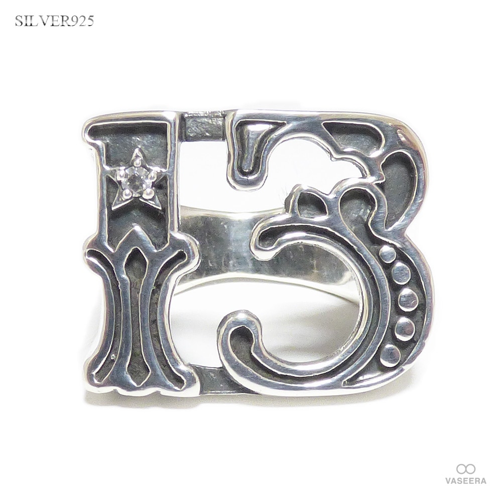 ナンバー”13” 数字デザイン ジルコニア埋込み シルバーリング 【シルバー925/SILVER925 /指輪】