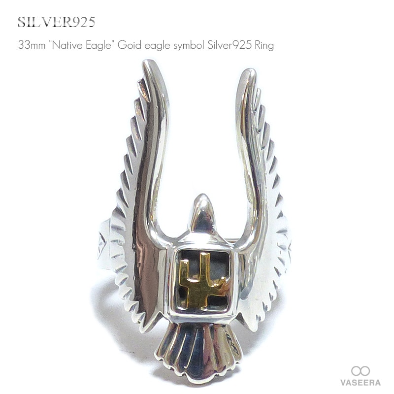 ネイティブ・イーグル ゴールドシンボル埋め込み 33mm幅 大型 シルバーリング 【シルバー925/SILVER925 /指輪】