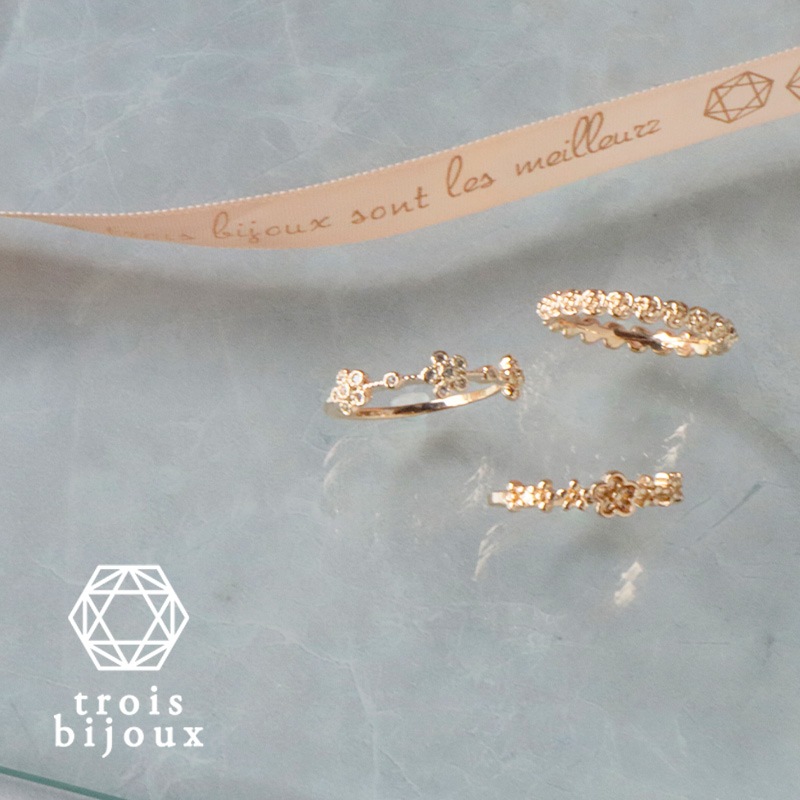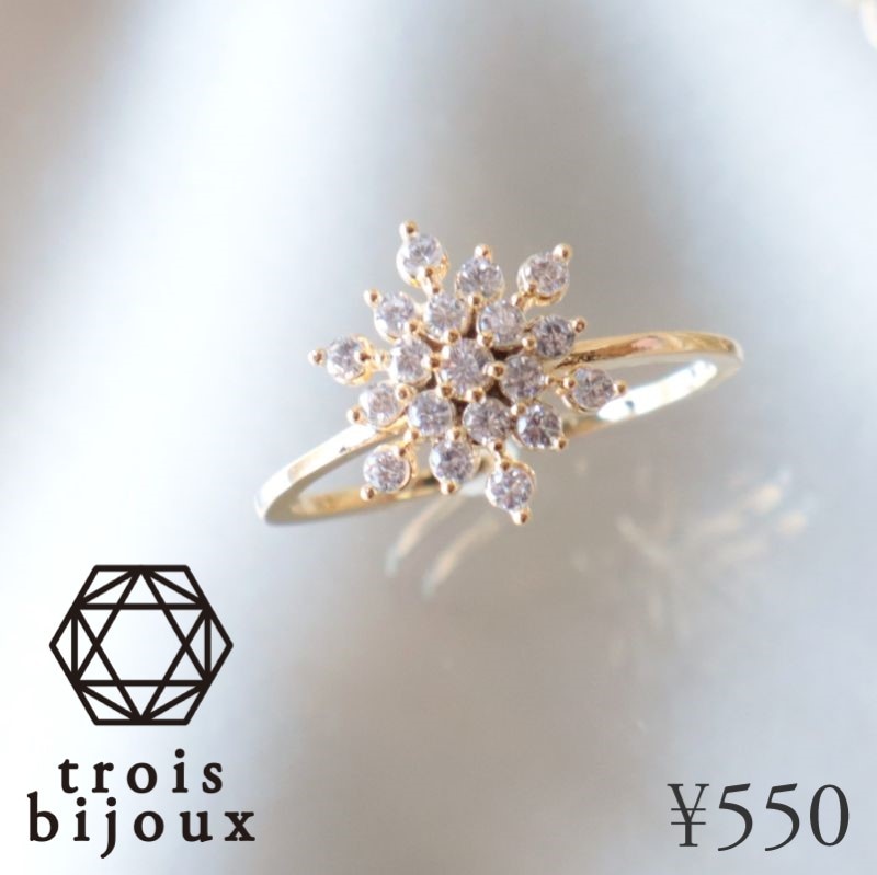 細めプチフラワーリング 18Kコーティング 指輪 ゴールド ジルコニア