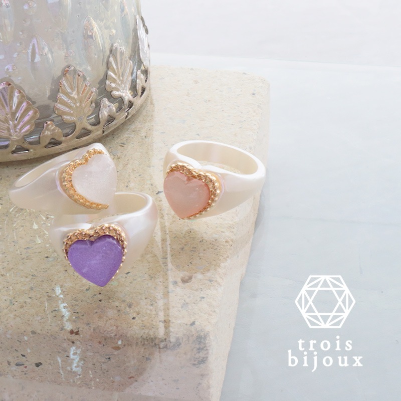 アクリルリング ぷっくりハート #14~#15/ゴールド/パール/ピーチ /パープル/