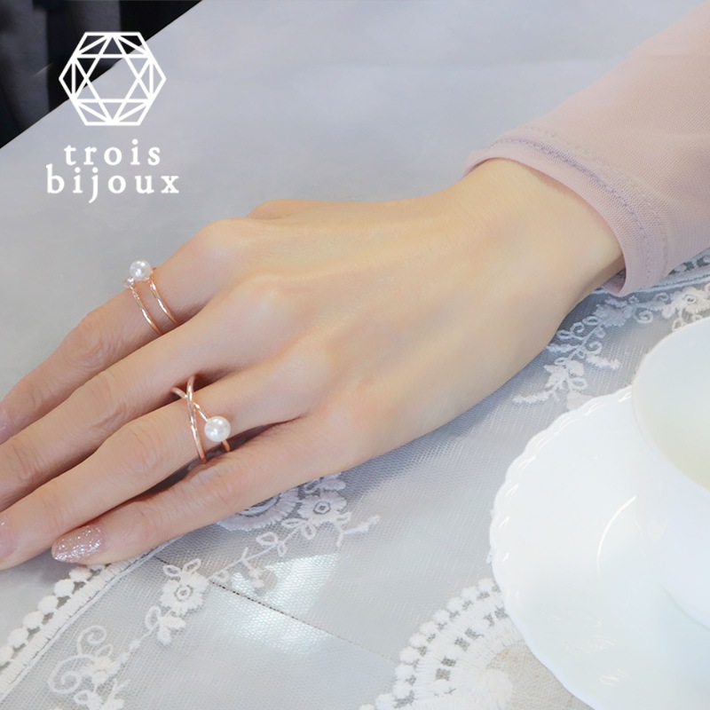 パールリング クロスラインストーン フリーサイズ/シルバー/ゴールド/ピンクゴールド/