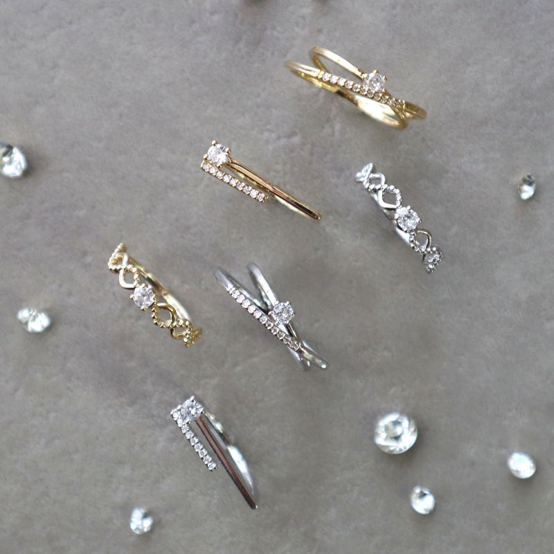 18Kメッキリング2Pセット/】#11ゴールド/ピンクゴールドキュービックジルコニア
